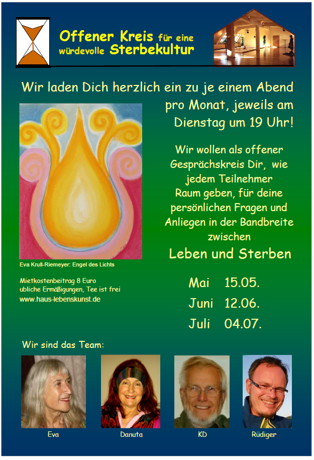 Der Offene Arbeitskreis für eine würdevolle Sterbekultur lädt einmal im Monat dienstags im Haus Lebenskunst ein zu einem Gedankenaustausch.