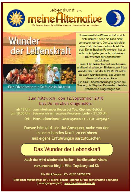 Wir freuen uns auf einen spannenden, aufbauend- berührenden Abend mit Dir